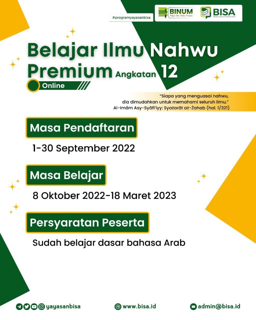 Biar bisa cobain baca kitab para ulama yang keren-keren, Yayasan BISA ada program Kelas Baca Kitab buat kamu latihan! ✨ Kamu akan dibantu untuk membaca dan menerjemahkan kitab berbahasa Arab oleh para pengajar berlatar pendidikan bahasa Arab. 🟣 Kitab: Syarḥ Al-Qawā’id Al-Arba’ li Al-Imām Al-Mujaddid Muḥammad ibn ‘Abd Al-Wahāb karya Asy-Syaikh ‘Abdurrahman ibn Nāṣr Al-Barrāk. …